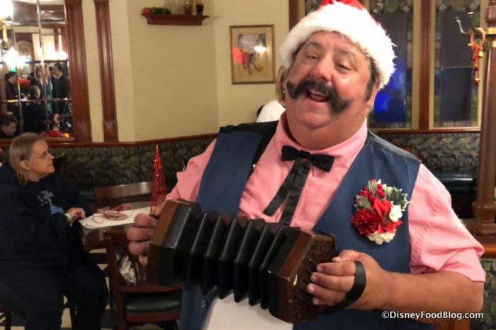 In Magic Kingdom during Mickey’s Very Merry Christmas Party, Tony’s Town Square Restaurant hosted a special event called Tony’s Most Merriest Town Square Party. For an extra $99 on top of the event ticket, guests could enjoy three hours of hors d’oeuvres, desserts, and a selection of alcoholic and non-alcoholic drinks included in the price, as well as reserved viewing for Mickey’s Once Upon a Christmastime Parade.