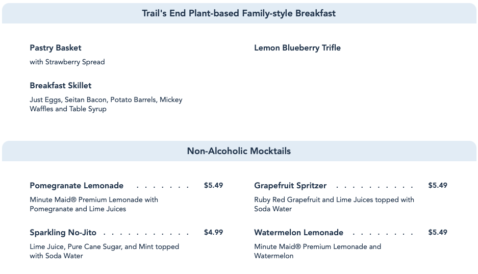 Trail’s End also has plant-based offerings and mocktails…