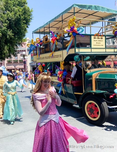 Aladdin, Jasmine, and Aurora escorted the streetcar.