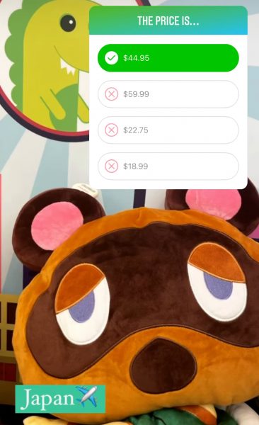We stayed in Japan for this next one and wanted to see if you could guess the price of the Tom Nook Animal Crossing Pillow. And, this one must have been a bit easier because 39% of our readers got it right — it’s $44.95!