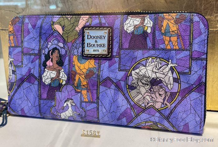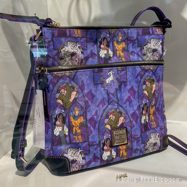 So what’s next — well, if you’re a fan of this movie, hold on to your hats — or maybe your wallets (because you’re going to need them to buy this). Because The Hunchback of Notre Dame is getting its very own Dooney & Bourke bag collection! We spotted a display at Disney World offering up a sneak peek at the collection.