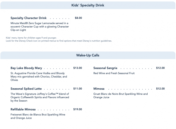 …the Kids’ Specialty Drink and Breakfast Cocktails…