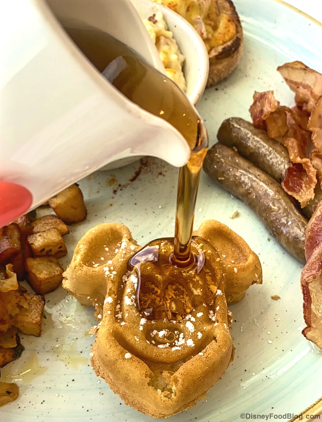 And of course, no Disney breakfast is complete without Mickey Waffles! In this case, the feast only came with one, but it was so crisp and fluffy, as usual! We poured syrup on ours and it was absolutely delicious!