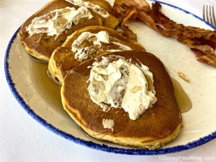These pancakes were AMAZING! They were so soft and fluffy — these were everything you’d want in a pancake! The pecan-honey butter was a great sweet spread and really took the pancakes to the next level. You can also get a side of two pancakes for $7 or a side of Mickey Waffles for $5.