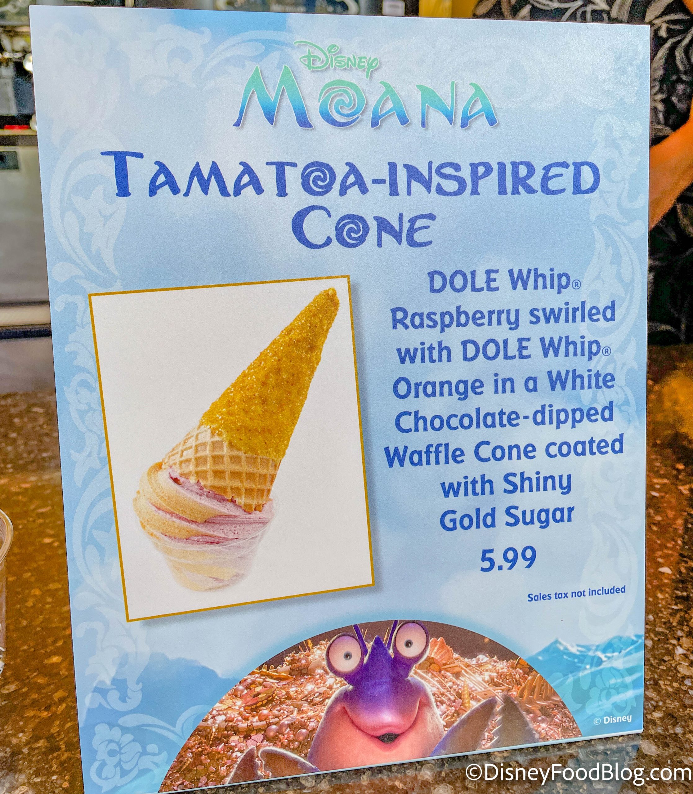 It’s the Tamatoa-Inspired Cone, made to celebrate the premiere of the resort’s new Moana-themed hotel rooms! We can’t wait to see them for ourselves later today, but until then, we’ll have this delicious raspberry and orange Dole Whip swirl to hold us over.
