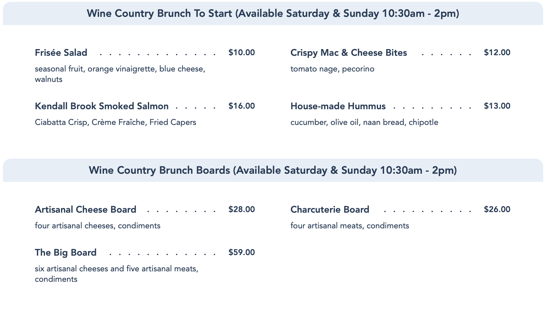 The pickles, sweet bacon relish, and mustard went really well with the meat selection, complimenting all the flavors of the meat selection. If you’re looking for cheese on your board, we recommend getting the Artisanal Cheese Board for $28 or The Big Board for $59, both of which feature plenty of cheese! Otherwise, the Charcuterie Board is perfect for meat lovers and anyone who isn’t big on cheese but loves charcuterie. You can get this dish for $26.