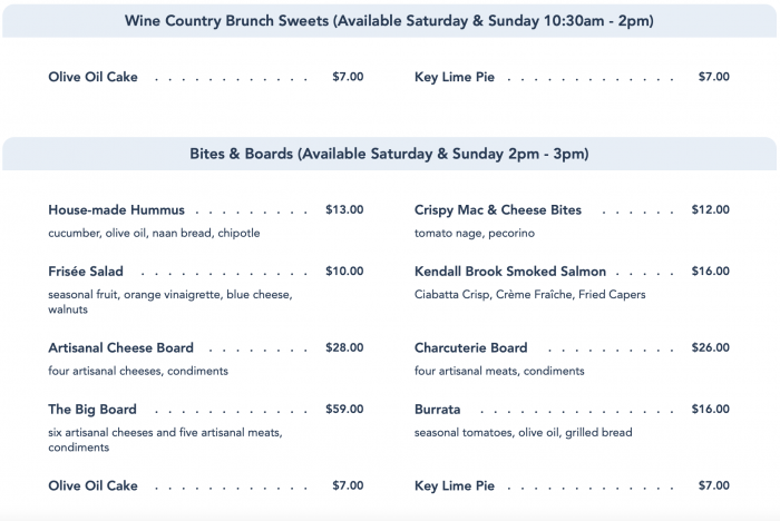 - You’re a foodie or a wine fan! The food here is top-notch and the wine selection is curated by Master Sommelier George Miliotes himself. This is truly where WBG separates itself from other Disney Springs brunch spots, the wine selection is crazy good and the pairings and wine knowledge from the waiters are excellent.