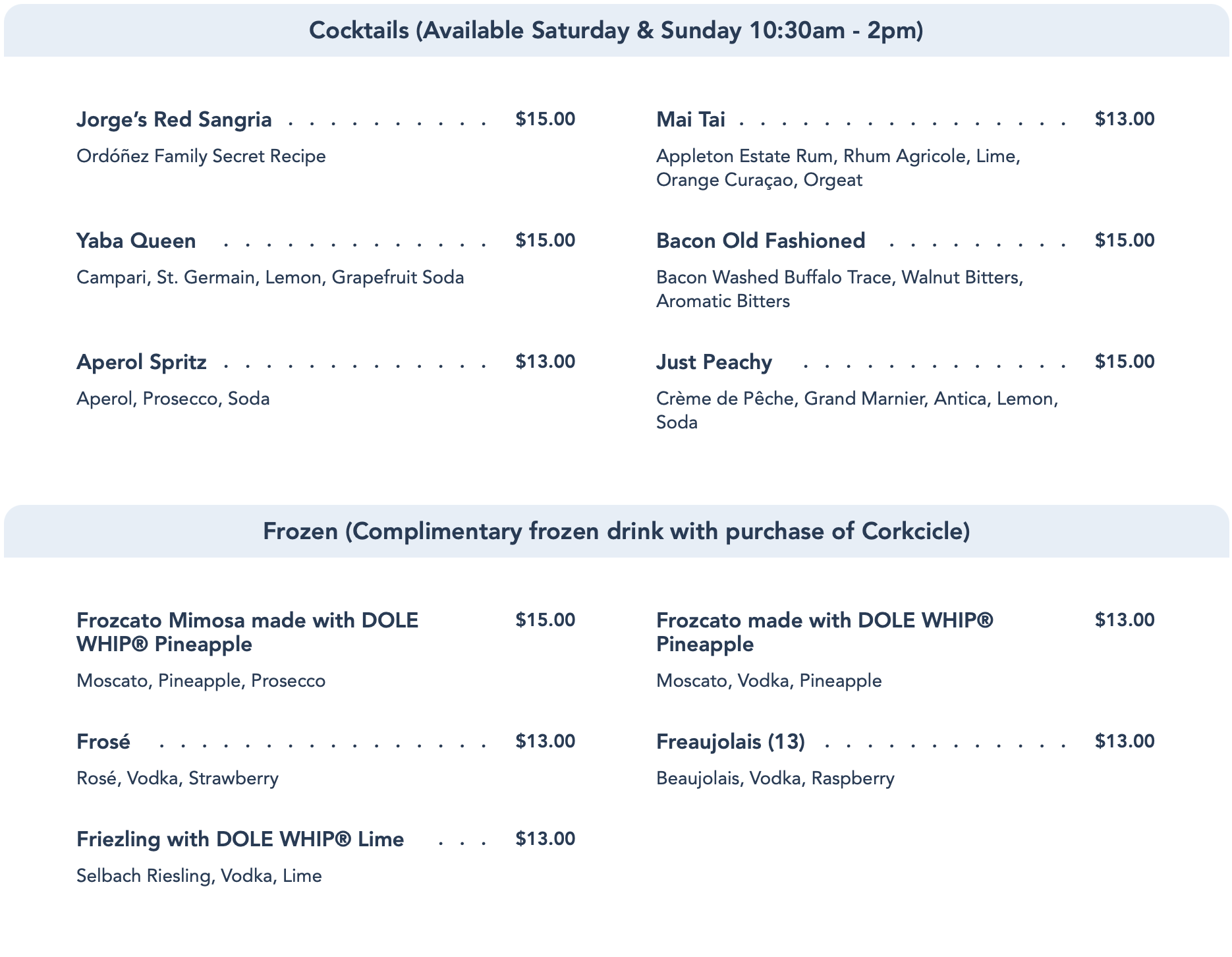 …cocktails and frozen cocktails (including their incredible frozen Dole Whip concoctions)…