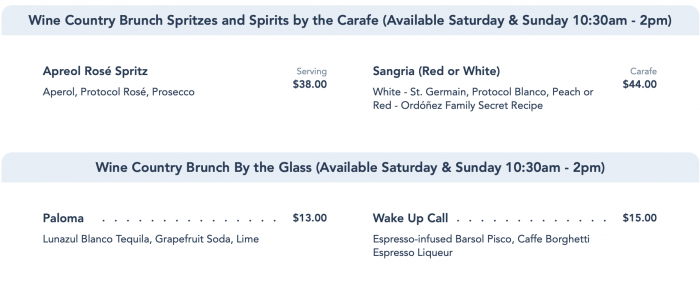 This is one of our FAVORITE Disney World spots because of its fun atmosphere, great service, delicious food, and a wonderful selection of over 140 wines. Owned and operated by Master Sommelier George Miliotes (the former sommelier of California Grill), this restaurant is a gem for foodies and Disney lovers alike! On May 29th, the restaurant’s brunch offering came back! So, we HAD to return to Wine Bar George (WBG) to check out the Wine Country Brunch!