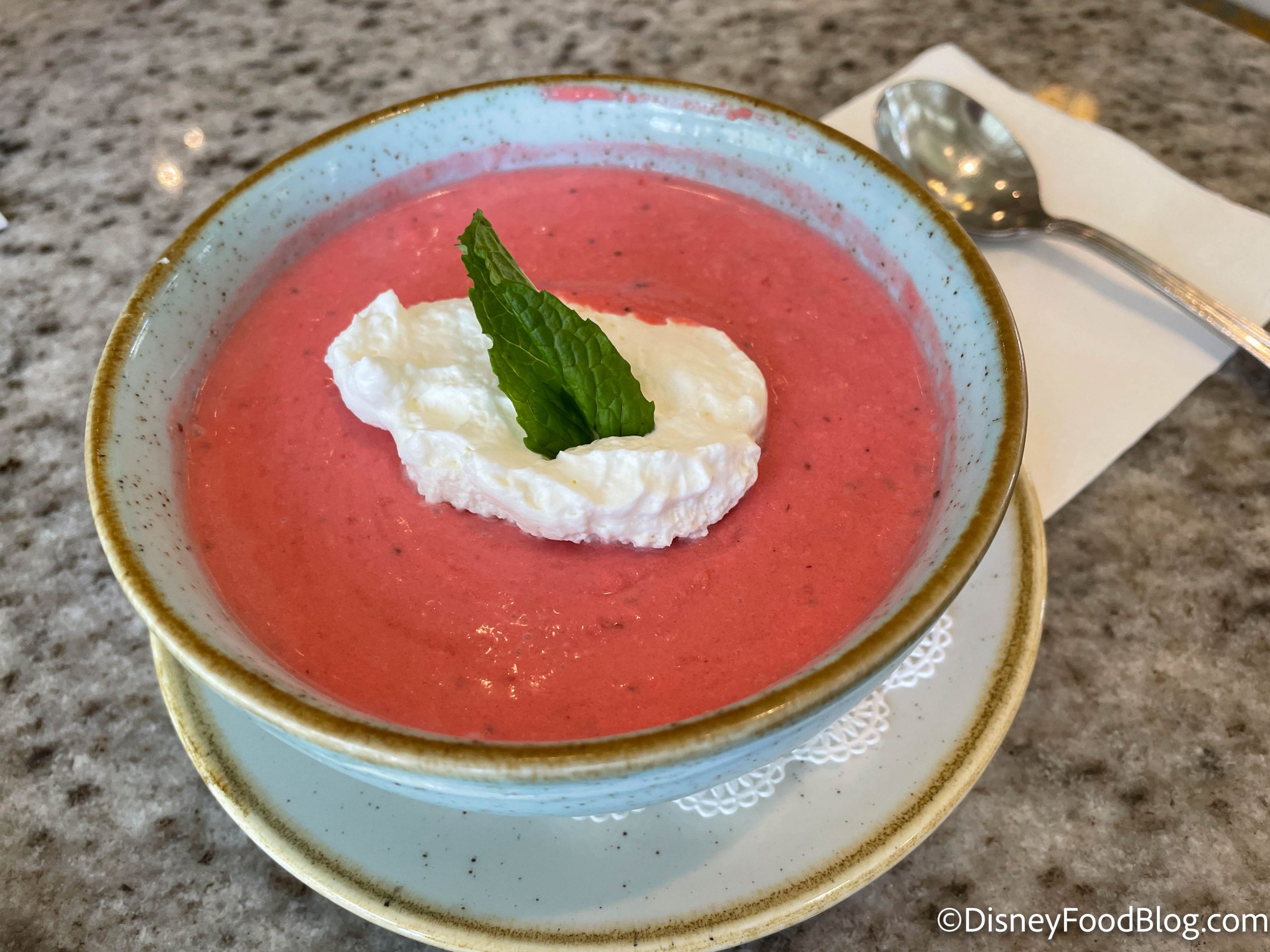 However, we also learned from our server that there’s a second, SECRET soup offering, and you guessed it — it’s STRAWBERRY SOUP! So if you have a craving for Strawberry Soup, visit the Grand Floridian Cafe and ask for it! It’s not on the menu, but it’s there!!