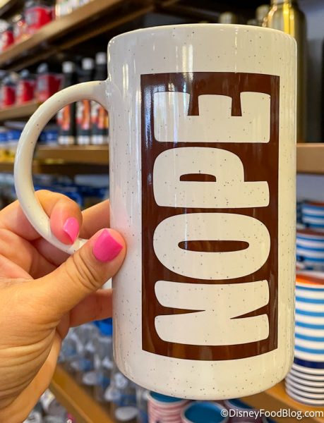 On the opposite side, it has what we’re all thinking in the morning before our cup of coffee — NOPE! This mug actually has a lid as well, so it’s perfect if you’re taking it on the go!