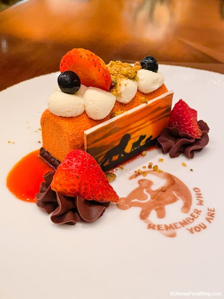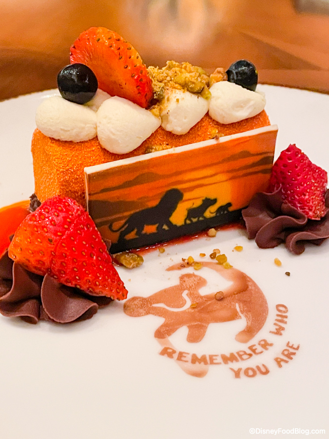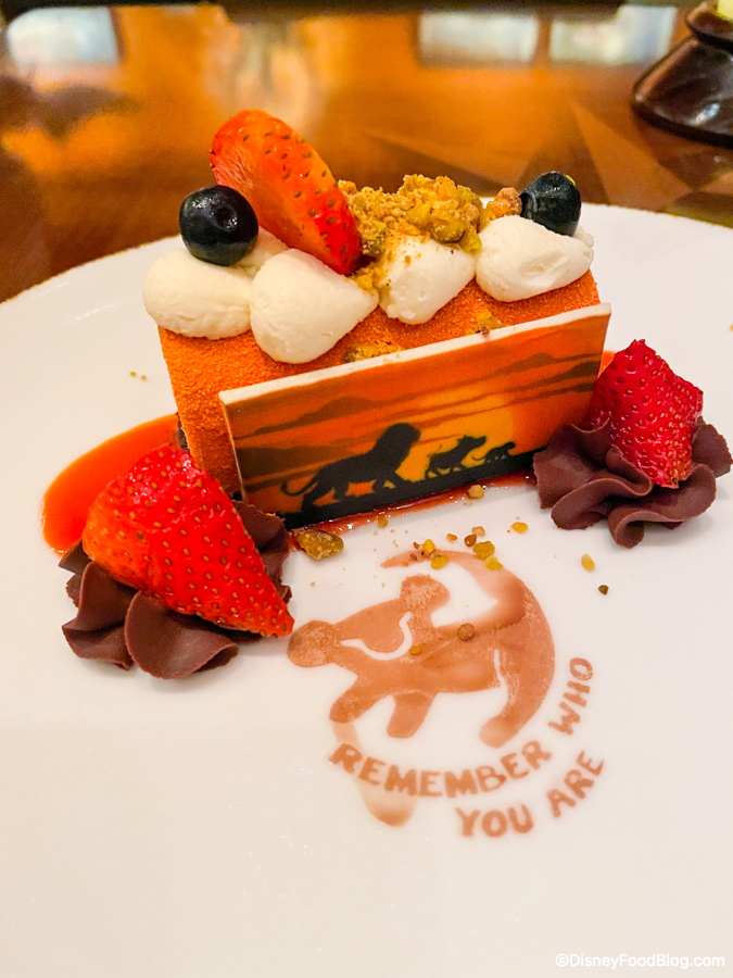 The quote on the plate made us wonder if the pastry chefs at Tiffins are doing okay, because out of allll the iconic quotes from The Lion King, they went with “Remember who you are.” You know…the line from the giant Mufasa ghost that appears in the sky to Simba while he’s having an existential crisis! Y’all good back there in the kitchen??