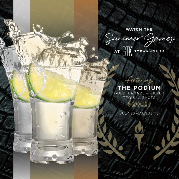 This trio of half-ounce tequila shots symbolizes the Olympic medals, with Patron Añejo representing gold, Patron Blanco representing silver and Patron Reposado representing bronze. You can get the trio for $20.21 (see what they did there? 2021?) at STK now through Sunday, August 8th, which is when this year’s games end!
