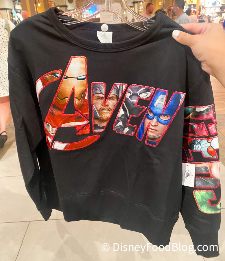 If you’re a fan of all things Marvel, be sure to be on the lookout for this Avengers sweatshirt, available at World of Disney for $54.99.