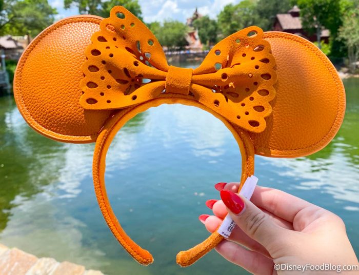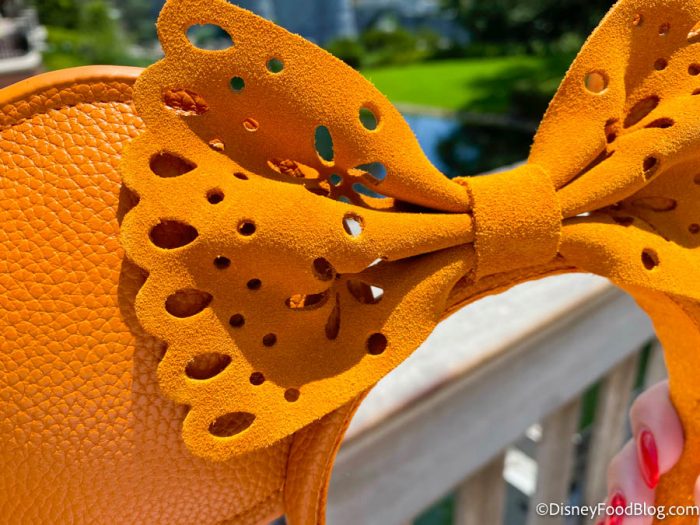 These ears are brownish-orange and feature delicate detailing. Is anyone else getting Frontierland vibes from these babies? Not only do they give us Frontierland…but they also look like basketballs. Do you see it?!