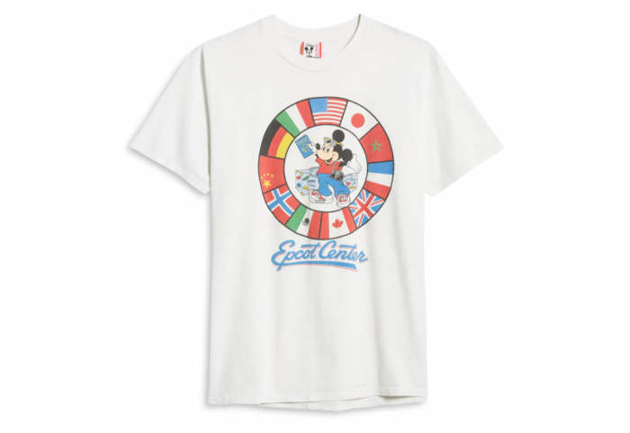 It has the flags of the 11 World Showcase countries in a circle with Mickey Mouse in the center. This totally looks like something we would’ve worn in family vacation photos in the 90s, and you can wear it again for $65.