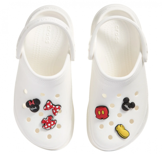 Or, if you’re looking for some of the hottest styles right now, then you need to check out the white CROCS that come with a 6-pack of Mickey & Minnie Jibbitz Shoe Charms!