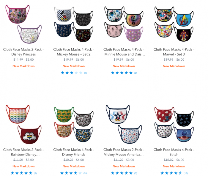 Online the masks have also been heavily discounted on shopDisney. Just about a month ago, we shared that you could get some of the Disney masks for just $3 online!! Certain 2-packs of masks were priced at $3, many 4-packs were priced at $6, and select other masks were also on sale.