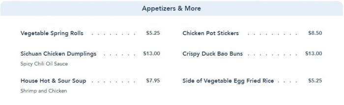 On both menus, there have been a few price increases to the kids’ meals. The Honey Chicken Nuggets went from $7.98 to $8.98, the Sweet-and-Sour Shrimp with Lo Mein Noodles went from $8.98 to $9.98, and the Kid’s Deluxe went from $10.98 to $11.98.