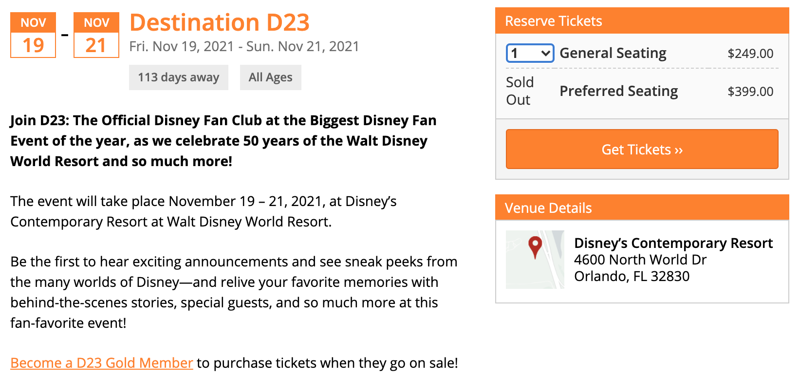 At 1PM EST today, the Destination D23 tickets went on sale and we hopped in line to try and grab one!