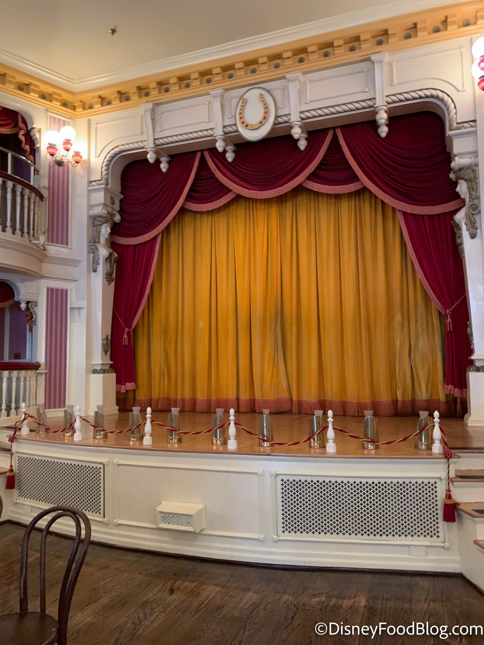 We saw the iconic Golden Horseshoe stage with curtains closed for now.