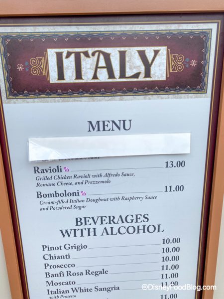 Over at the Italy food booth at the Food & Wine Festival, we noticed that something was missing during one of our trips!