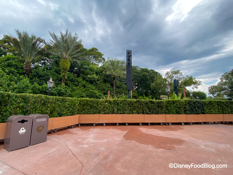 The EPCOT Food and Wine Festival started back on July 15th, but there are some festival offerings that aren’t available until October 1st! Recently, though, we noticed that the area where the Brazil booth typically would be is empty and bushes have been put up around the area. The Brazil booth is one that won’t be opening until October, so we’ll be sure to keep an eye out for more updates on that.