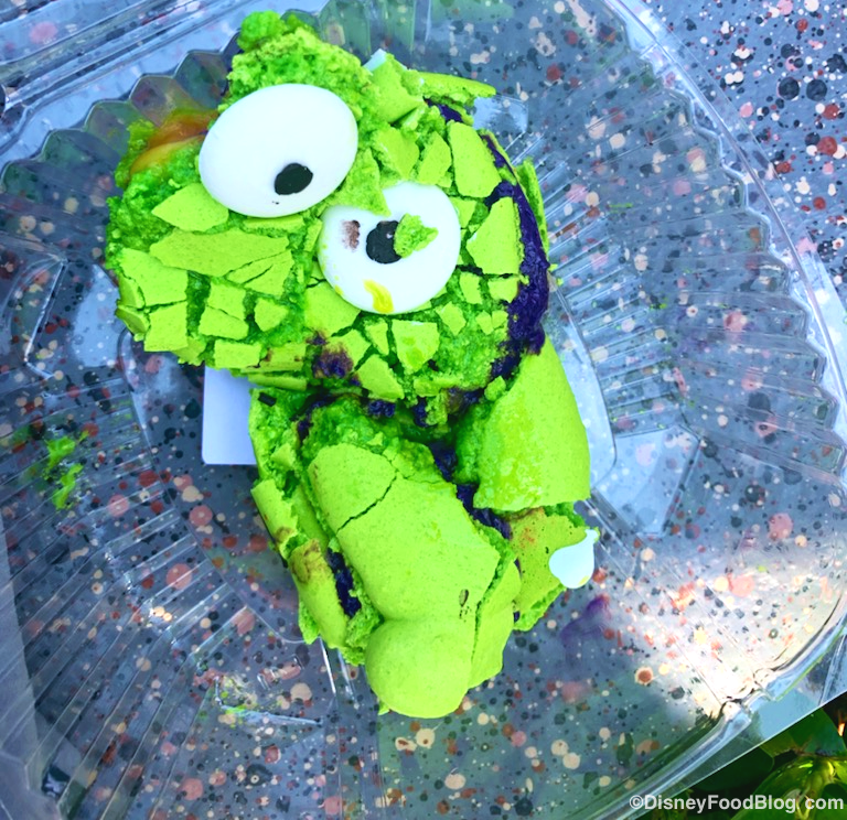 This treat is available for $5.99 and features a lemon macaron with blackberry filling, which was delicious! In the past we’ve spotted this macaron at the Disneyland Pixar Fest and a special Santa version of the treat for the holidays!