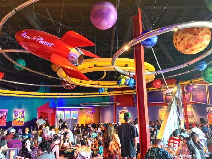 Alien Pizza Planet in Tomorrowland at Disneyland is much like the fictional restaurant in Toy Story: it serves up pizza, pasta, and other delicious treats!