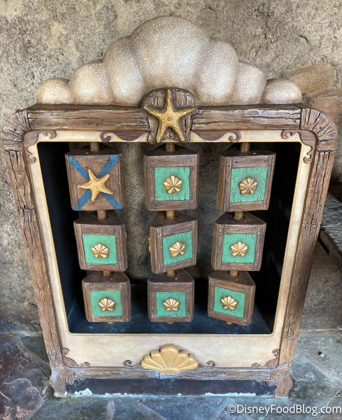 We also stopped to play some under the sea Tic Tac Toe while sipping a Mermaid Slushy, and the Cast Member asked us if we knew how much this cost for Disney to make. Any guesses?