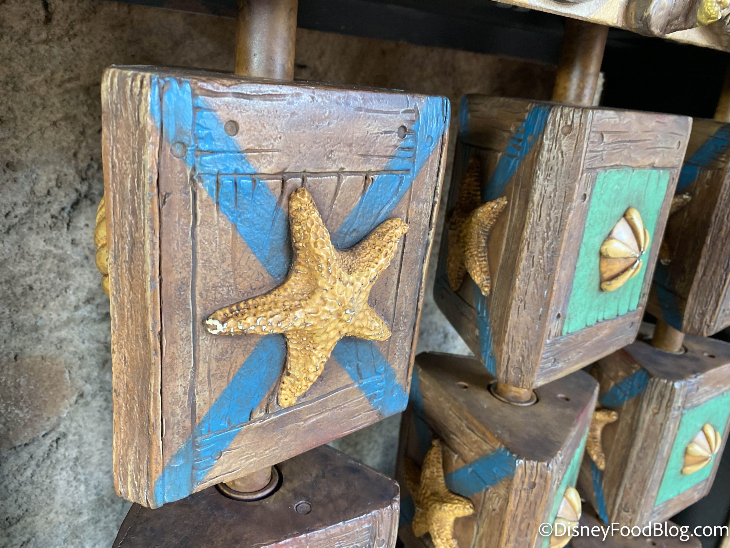 By the Under the Sea: Journey of the Little Mermaid ride, you can find this King Triton statue. According to the Cast Member, he has to be repainted every quarter, and do you know how much it costs each time? $15,000! Every quarter! King Triton has an expensive glow-up.