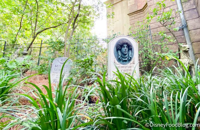 And that just at the beginning of the line! As you continue through the queue, you get to learn more about the happy haunts that reside in this abode. Be sure to read every tombstone and take in every detail along the path up to the Haunted Mansion, as it all tells a story (the tombstones are also fun nods to Imagineers that created the ride!). Every time you go through the queue, you’ll learn more about this spooky past! We love it so much, sometimes we’re disappointed when there’s little to no wait — because the details in the queue are truly part of the attraction!