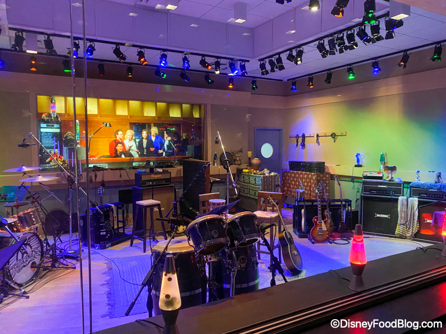 Once the line creeps into the queue, it does have some great theming and you get to see some concert posters and album paraphernalia from some current musical talent as you saunter through G Force Records Studio. (Listen to the overhead announcements inside and behind the “recording studio” doors while you wait!)