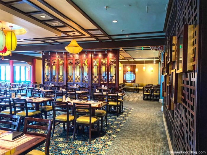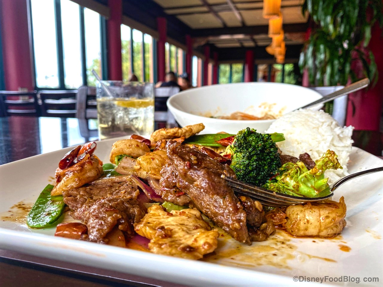 Nine Dragons in the China Pavilion of EPCOT is a table-service offering that features a wide range of cuisines, serving up Cantonese, Mongolian, Szechuan, Hunan, and Kiangche-style dishes. It’s not exactly a fan favorite, but we’ve enjoyed some of their offerings in the past!