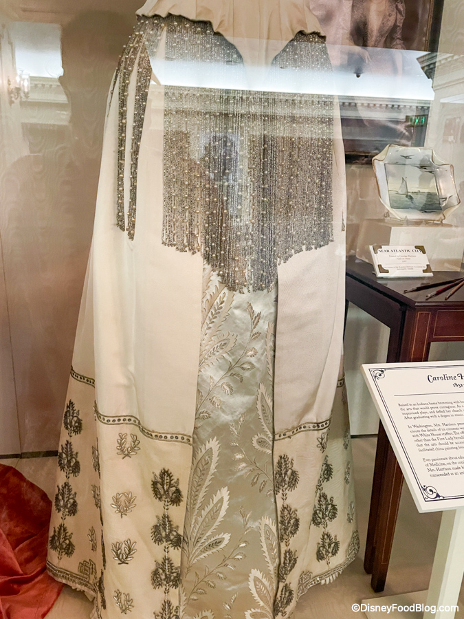 Then we noticed a new historical artifact! Former First Lady Caroline Harrison’s New Years’ Eve Gown is now on display.