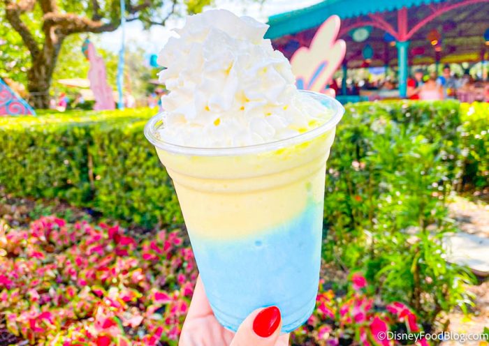 It’s a Frozen Lemonade with Fanta Blue Raspberry, topped with Whipped Cream for $5.99.