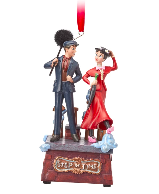The pair are on a rooftop, and you can see chimneys billowing smoke behind them! If you hit the button on this ornament, it’ll sing “Step in Time” from the movie! (You can also turn it off by hitting the same button.)