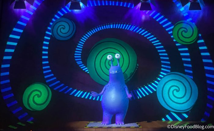 In case you haven’t been, Monsters, Inc. Laugh Floor is like a stand-up comedy show, only it’s all monsters as the comedians! The creepy Roz watches over the whole thing as the monsters try to fill up the tank in the theater with your laughs!