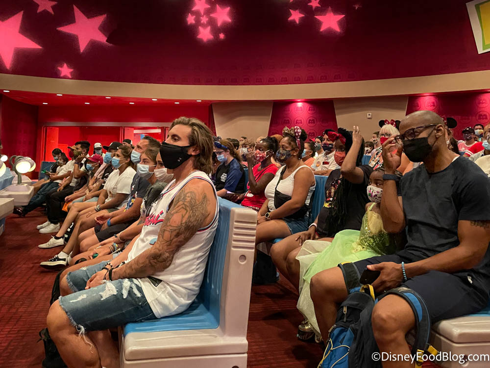 Inside the theater, guests were not socially distanced, but they were all wearing masks.