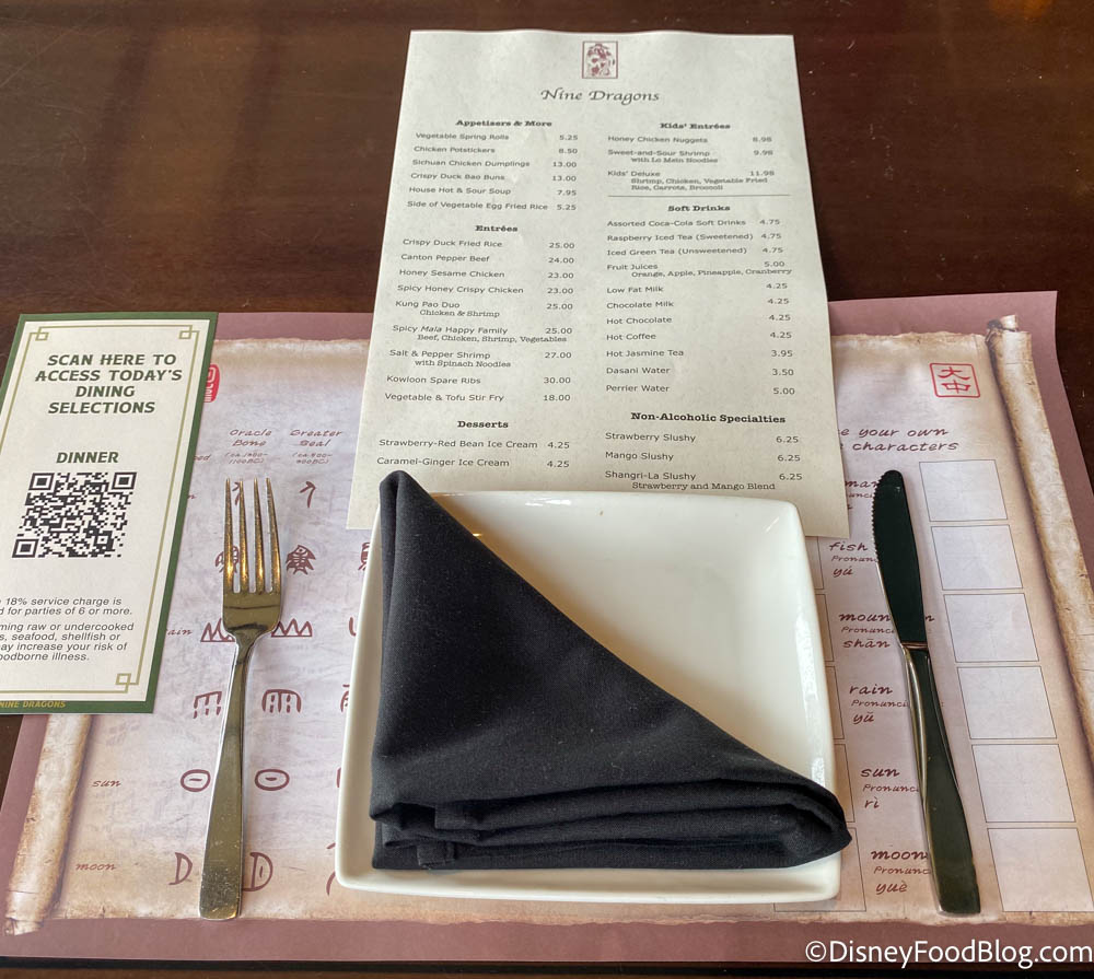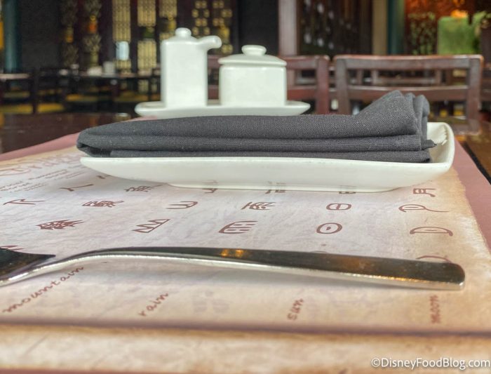 The paper placemat under your place setting even has some Chinese characters you can learn while you wait!