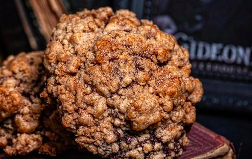 The Dark Coffee Cake Cookie is available from sunset to sell-out, so head in at nightfall to try the newest flavor! Gideon’s is going by the sunset time on your smartphone, so just check the weather app to see when the cookies will start selling.