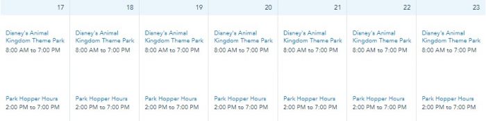 And for the final park, Disney’s Animal Kingdom will be open from 8AM to 7PM each day.