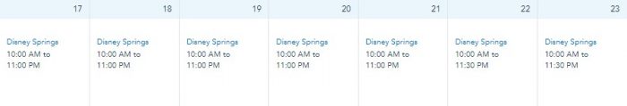 And finally, those stopping into Disney Springs might be pleased to see some later evening hours. October 17th through October 21st, Disney Springs will be open 10AM to 11PM. On Friday the 22nd and Saturday the 23rd, it will remain open until 11:30PM.