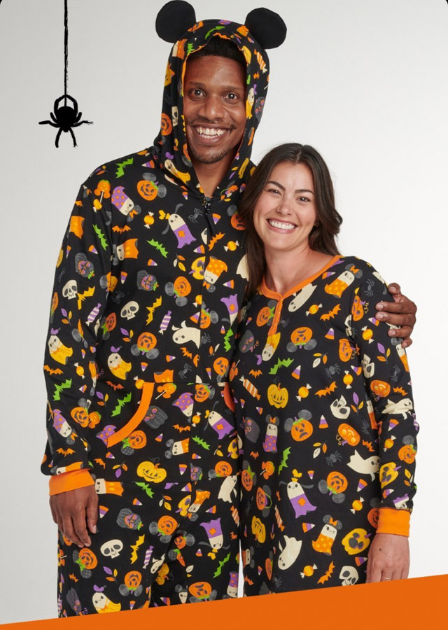Disney didn’t stop there. On the shopDisney Instagram, we got even more sneak peeks starting with the traditional Halloween onesie pajamas. These are covered in Halloween fun, and the hood even has Mickey ears!