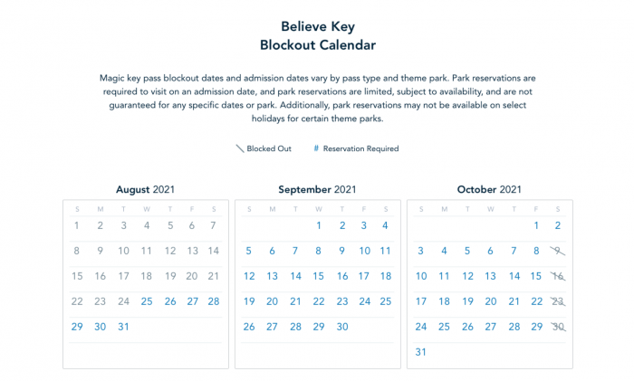 Like we mentioned above, the Magic Key has significantly more blackout dates for the middle levels — the Dream Key has 0 days, the Believe Key has roughly 50 days, the Enchant Key has roughly 150 days, and the Imagine Key has roughly 220 days.