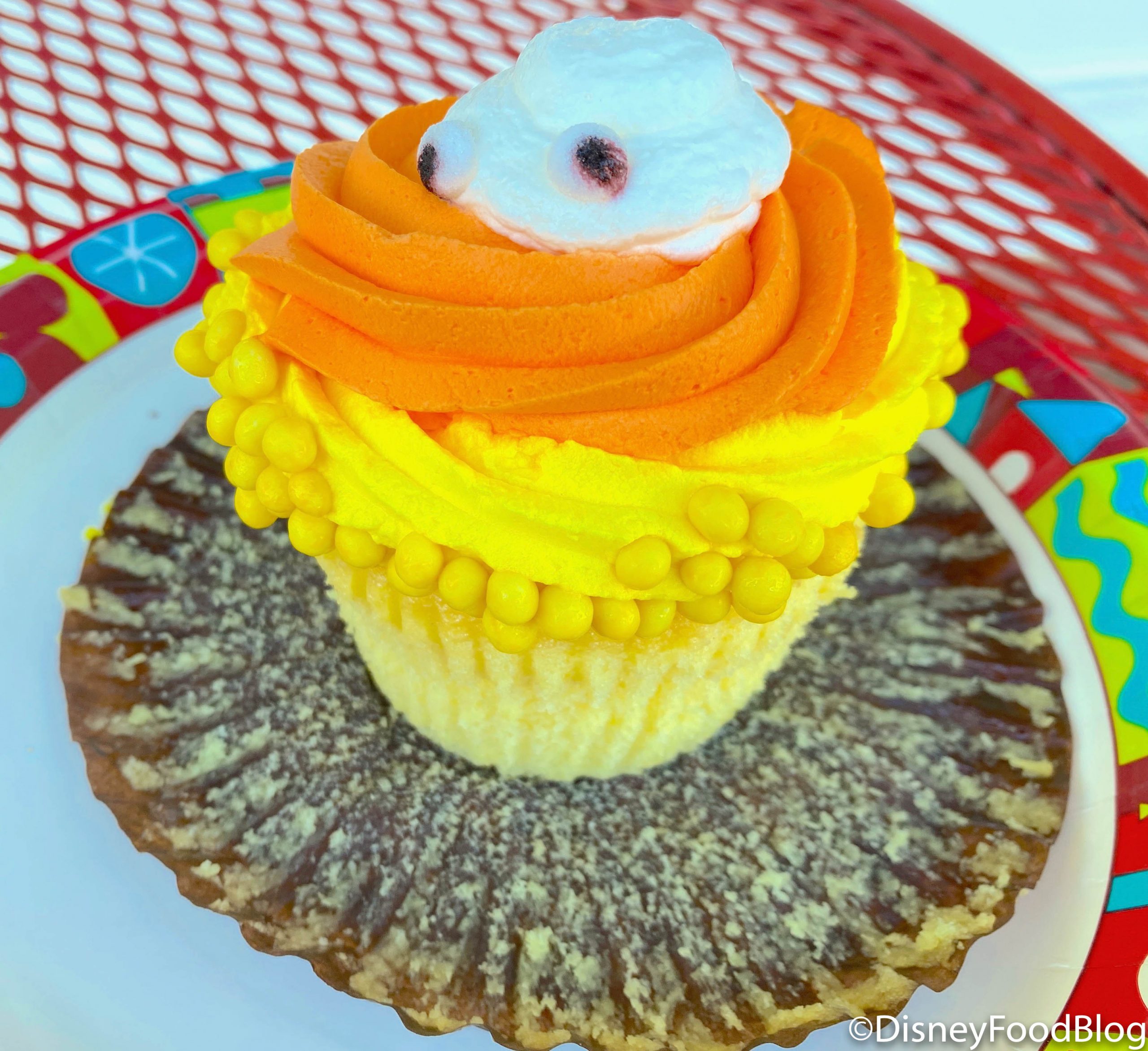 - Scar Cupcake – Red velvet cupcake with toasted marshmallow filling, chocolate marshmallow frosting, chocolate pebbles, and white chocolate flames with an edible icing image of Scar (Available 10/1-11/4)