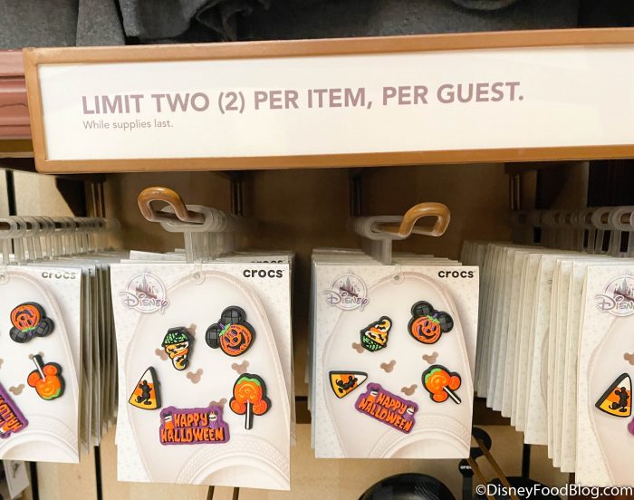 This merchandise limit only applies to the newly-released Halloween merchandise but it does apply to EVERYTHING in the release — ears, crocs, charms, Spirit Jerseys, pins, and everything else.