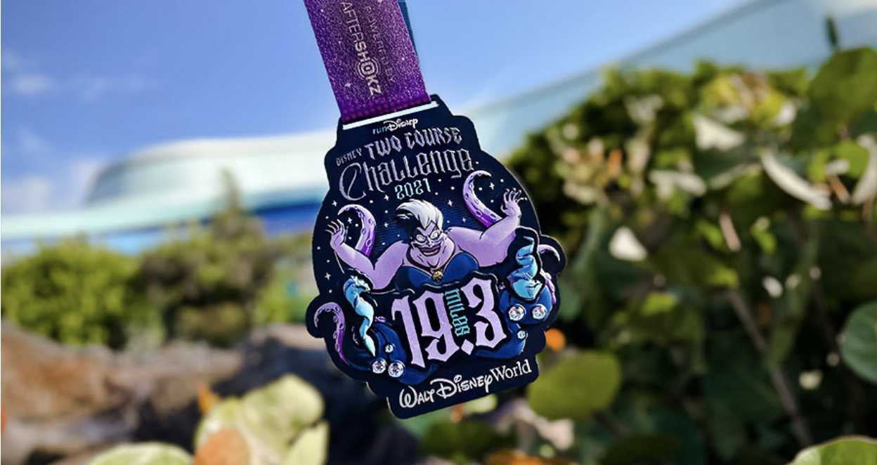 And if you choose the Two Course Challenge, which totals 19.3 miles ran between the Half Marathon and the 10K races, you get a medal of our favorite sea witch, Ursula, from The Little Mermaid.