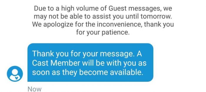 Today, our reporter waited for a little over 40 minutes to receive a reply. So, the times really can vary. But that tomorrow message sure does give an initial shock. If you’re looking for a faster reply you might want to call Disney World through the Help Center page on My Disney Experience! Or if you’re at the parks, it may be faster to go to the Front Desk at your hotel or Guest Relations.