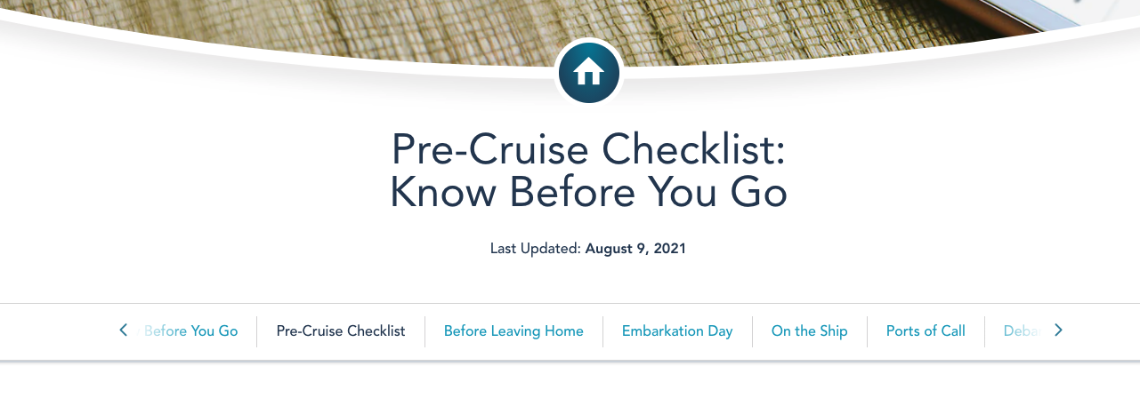 Recently, Disney also added a pre-cruise checklist section to the site to help you make sure you’ve meet all of the rules/requirements. This can be an extremely helpful way to make sure you’ve done everything you need to do when you need to do it.